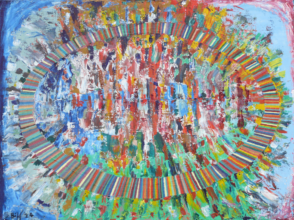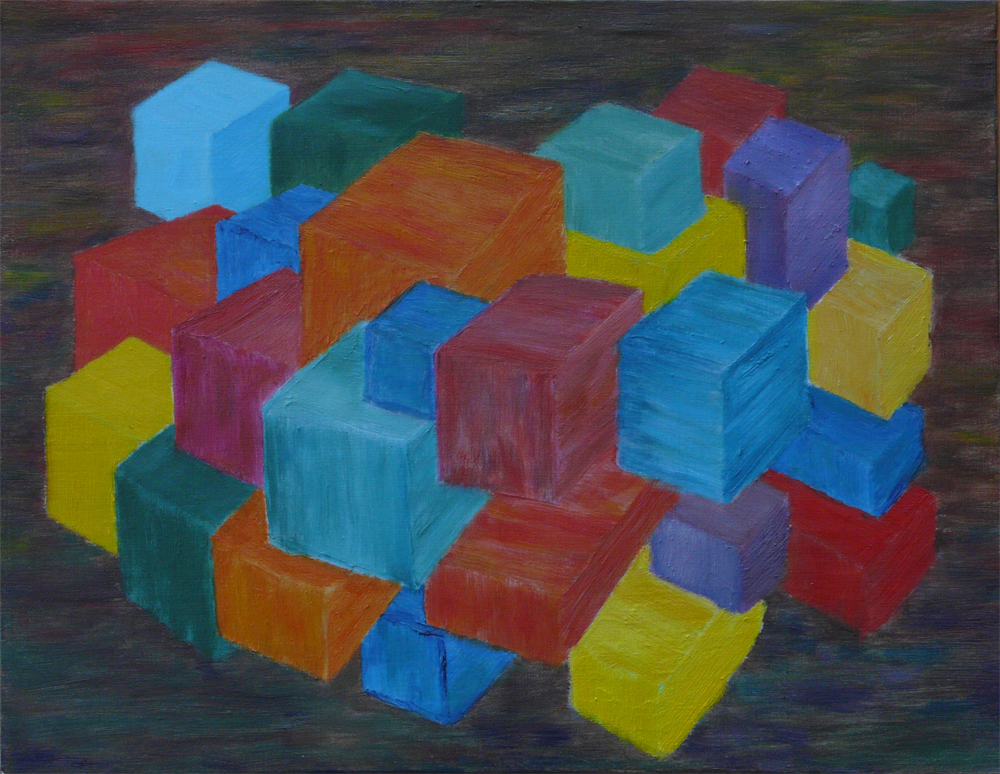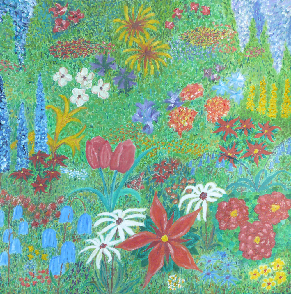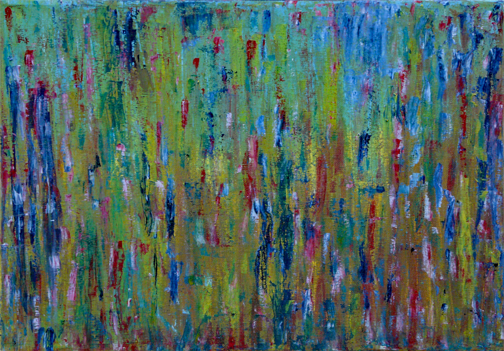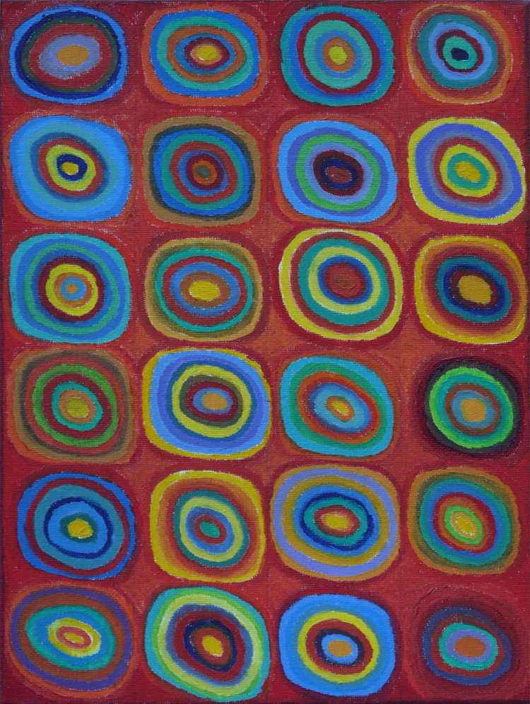 We are all at least a little bit synethesic, we know what the red and blue spots on taps mean, we agree that reds are 'warm' and blues are 'cool'. Can you visualise the year's callendar in your mind's eye? If so, do the seasons progress around a circle? For me they do, in an anti-clockwise direction. So in the painting winter is on the left, with a bias towards cool colours, spring at the bottom, summer to the right and autumn above.